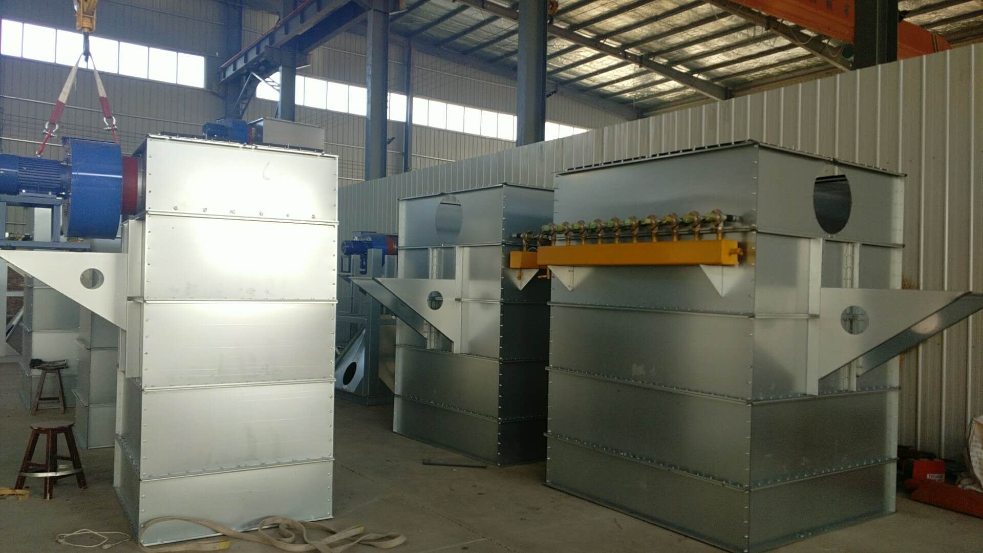 镀锌板拼装布袋除尘器工作原理:拼装布袋除尘器高的除尘效率是与它的除尘机理分不开的。含尘气体由除尘器下部进气管道,经导流板进入灰斗时,由于导流板的碰撞和气体速度的降低等作用,粗粒粉尘将落入灰斗中,其余细小颗粒粉尘随气体进入滤袋室,由于滤料纤维及织物的惯性、扩散、阻隔、钩挂、静电等作用,粉尘被阻留在滤袋内,净化后的气体逸出袋外,经排气管排出。滤袋上的积灰用气体逆洗法去除,去除下来的粉尘下到灰斗,经双层卸灰阀排到输灰装置。滤袋上的积灰也可以采用喷吹脉冲气流的方法去除,从而达到清灰的目的,去除下来的粉尘由排灰装置排走。拼装布袋除尘器的除尘效率好也是与滤料分不开的,滤料性能和质量的好坏,直接关系到拼装布袋除尘器性能的好坏和使用寿命的长短。而过滤材料是制作滤袋的主要材料,它的性能和质量是推进袋式除尘技术进步,影响其应用范围和使用寿命。
