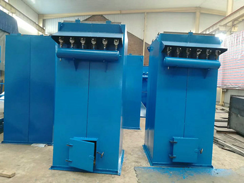 单机脉冲袋式除尘器基本结构由风机、过滤器和集尘器三个部分组成,各部件都安装在一个立式框架内,钢板壳体,烘漆防锈,运行,使用方便。除尘器风机采用离心风机,风量大,风压高,并采用消声措施,噪音小。过滤器采用扁布袋组,袋式除尘器的每个布袋内装有弹簧钢丝网,过滤效果好。除尘器清灰机构采用电动机带动偏心轮、连杆使布袋抖动而清掉沾在滤袋表面的粉尘。此除尘器设有检修门,方便检修和换袋。