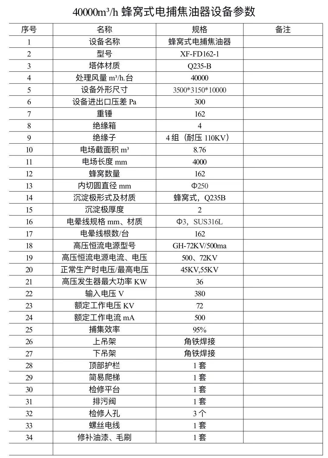 5000风量、10000风量、20000风量、30000风量、40000风量、50000风量蜂窝式电捕焦油器,其风量是指单位时间内空气的流通量,风量单位用m3/min、m3/h表示,又称烟气量;电捕焦油器的处理风量是选型的关键,确定了处理风量,就可以确定电捕焦油器的型号了。处理风量的大小对设备的工作有很大影响,选大选小都会降低除烟效率。慧阳环保建议大家在选用电捕焦油器型号之前,咨询专 业的生产厂家,让技术人员为您设计。如果您有什么不懂或是疑问请拨打13333079818穆经理。